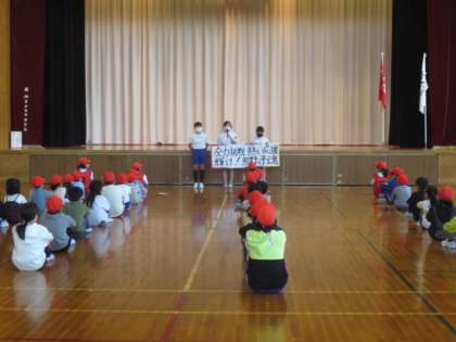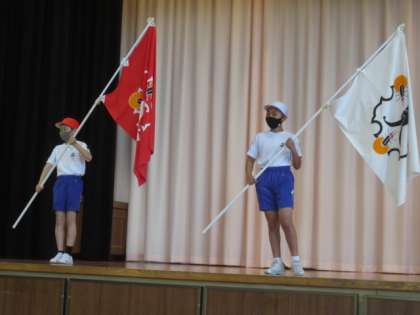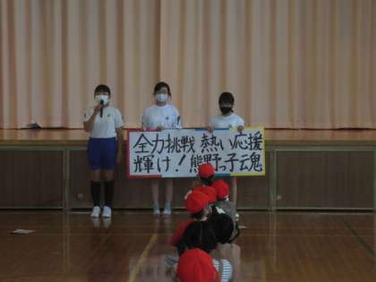 みんなで決めた運動会のスローガンの紹介の後、団長に団旗が渡されました。