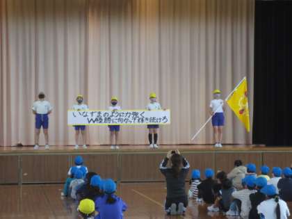 黄団の様子です。青団も黄団も「協力して優勝するぞ」と意気込みが感じられました。