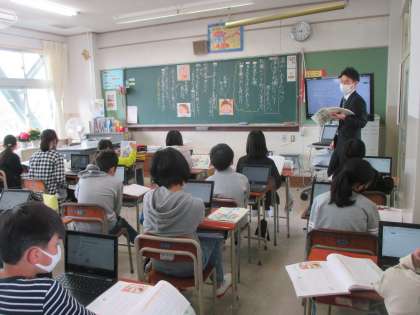 子供たちは、緊張した面持ちでしたが、張り切って発表をしたり、じっくりと考えたことをタブレットに入力したりしていました。