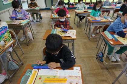 ブロックやおはじきを使って算数の勉強をしました。ブロックを使うことで分かりやすくなり、楽しんで学習しています。