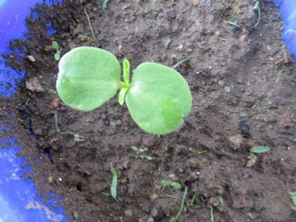 先週種を植えたホウセンカの芽が、次々に出始めました。