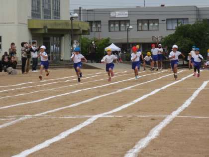 50m走では自分の力を出し切って走ることができました。玉入れでは、どの団も1年生と協力して精一杯行うことができました。