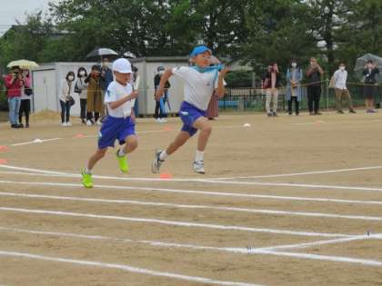 これまで、朝やわくわくタイムなど、自主的にはりきって練習を進めてきたおかげで、選手らしく堂々と走りきることができました。バトンの受け渡しも、とても上手になりました。