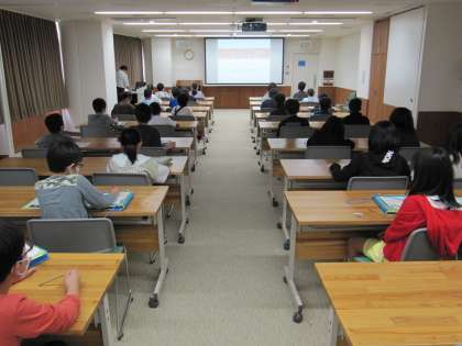 写真は語り部の方のお話を聞いている様子です。ご家族がイタイイタイ病にあわれた方のお話を実際に聞き、その思いや願い、子供たちや未来に向けたメッセージを伺うことができました。語り部の方の熱意を実際に感じ、子供たちも「もう二度とこのような公害を起こしてはならない」と気持ちを新たにしていました。