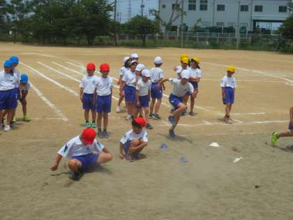 1組はシャトルラン、2組は立ち幅跳びにチャレンジしました。