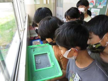 サナギになると、動かなくなりますが、休み時間ごとに何か変化はないかと見に行く子供たちの様子から、命あるものを大切に思う気持ちが伝わってきます。