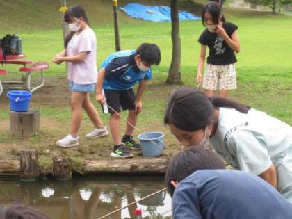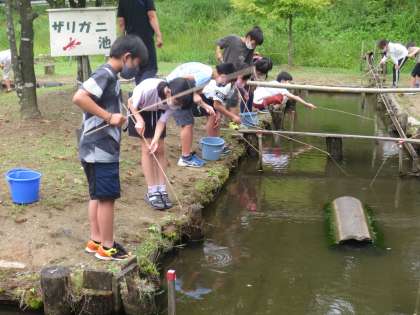 もう一つの活動は「ざりがに釣り」です。 おもしろいようにざりがにが釣れました。