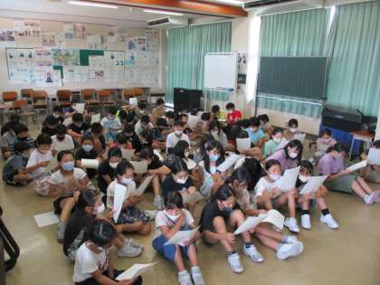 区域連合音楽会の曲を学年全体で聴きました。聴きなじみのある曲のため、曲が流れると口ずさむ姿が見られ、子供たちから「楽しみ」という声もあがりました。これから、区域連合音楽会に向けて学年一団となって頑張っていきます。