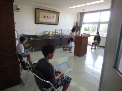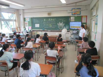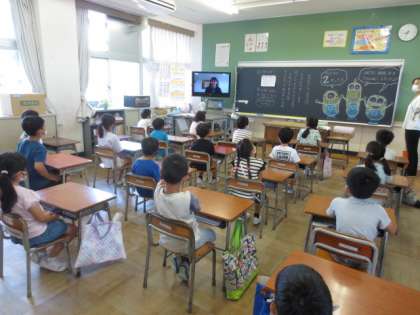始業式は、熱中症対策及び密を避けるため、リモートで行いました。始業式の後、改めて各教室で手洗いや安全な学校生活について、担任の先生から話を聞きました。