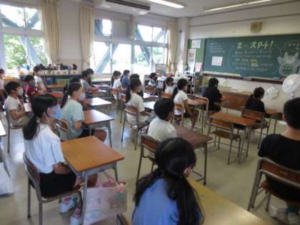約1ヶ月ぶりに、子供たちの元気な姿が学校に戻ってきました。始業式に真剣に臨む姿からは、2学期もがんばろうという気持ちが伝わってきました。「スマイル&スクラム」で、学習や行事をがんばっていきたいと思います。