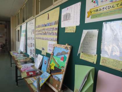 夏休みの作品を各学年の廊下に展示しています。昨年はできなかった自由研究。今年は力作揃いです。残念ながら保護者の皆様に見ていただくことはできませんが、子供たちは、違う学年の作品も熱心に見て来年の参考にしているようでした。