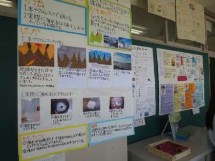 夏休みの作品を各学年の廊下に展示しています。昨年はできなかった自由研究。今年は力作揃いです。残念ながら保護者の皆様に見ていただくことはできませんが、子供たちは、違う学年の作品も熱心に見て来年の参考にしているようでした。