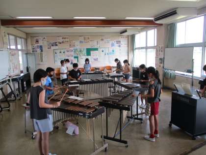 残念ながら、連合音楽会は中止となりましたが、学びの発表会に向けて、木琴や鉄琴を演奏する子供たちが、休み時間を使って練習に励んでいます。家に持ち帰ることができない楽器なので、学校での限られた時間の中で精一杯取り組む様子がとてもすばらしいです。