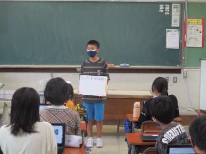 理科の授業において、各クラスで自分の自由研究について発表しました。子供たちの発表からは、沢山のがんばりと創意工夫を感じました。