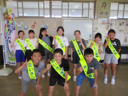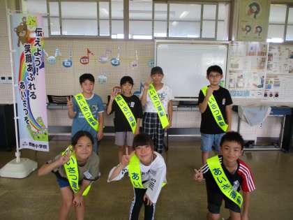 熊野小学校に新しいあいさつリーダーのたすきが届きました。このたすきを身に付けて、熊野っ子全体に素敵なあいさつの輪を広げようと、運営委員は早速、委員会活動の時間に様々なアイディアを出し合っていました。学校だけでなく、家族や地域のみなさんにも素敵なあいさつをすることができる熊野っ子の姿を期待しています。