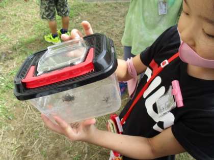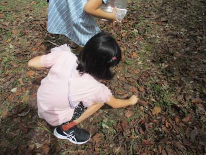 生活科の時間や休み時間に、虫を見つけています。どんなところにいるのか考えて探しています。