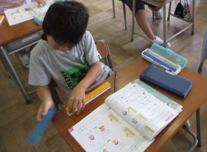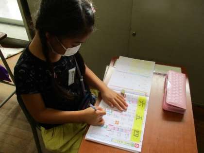 国語科では、漢字の学習を始めています。一画一画丁寧に書いています。