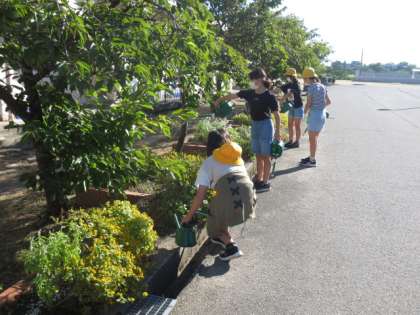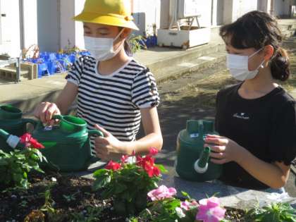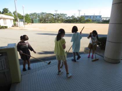 朝、登校した子供たちは、花壇のお世話や校舎内外の清掃をしてます。きれいな学校で気持ちよく勉強ができます。