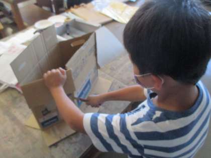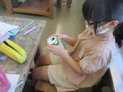 生活科の学習では、動くおもちゃ作りをしています。ゴム、風、投げる、転がす等の力を利用したおもちゃを作り、最後にはおもちゃランドを開く予定です。どんなデザインにするか、どういう作り方をしたらよいかを考えながら、楽しく学習を進めています。