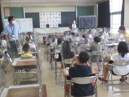 外国語活動では、アルファベットを学習しています。今日は、絵の中に隠れたアルファベットを探す活動をしました。大文字と小文字の形の違いに気を付けて探しました。