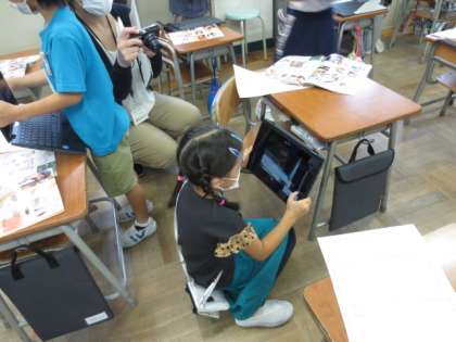 1年生、図画工作科「すきまちゃんの すきな すきま」の学習の様子です。自分が作ったすきまちゃんを見付けた隙間に置き、クロムブックで写真を撮って紹介し合いました。普段あまり気にしない隙間が、とても素敵な場所に見えてきました。