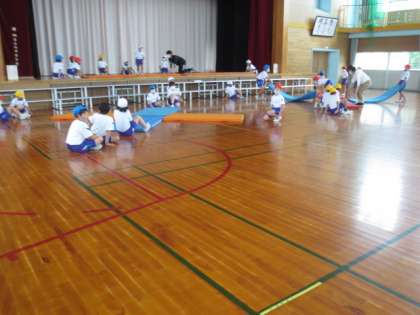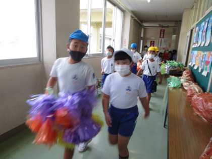 3年生は、発表会で持つポンポンを自分たちで作っています。一人でたくさん作っている子供もいます。マット運動をしますが、マットの配置にも工夫が見られます。どんな発表になるかお楽しみに。