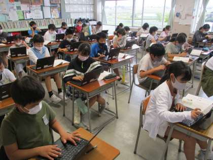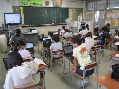 国語科では、「よりよい学校生活のために」という学習でタブレットを活用しています。学校生活がよりよくなるためには、みんなでどのようなことを頑張っていけばよいのかなど、一人一人が考えを出しています。