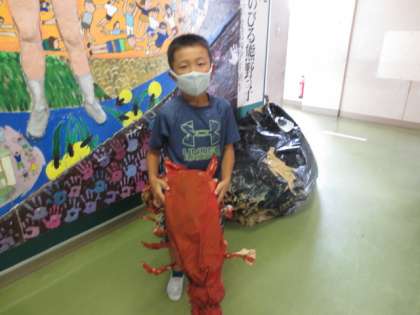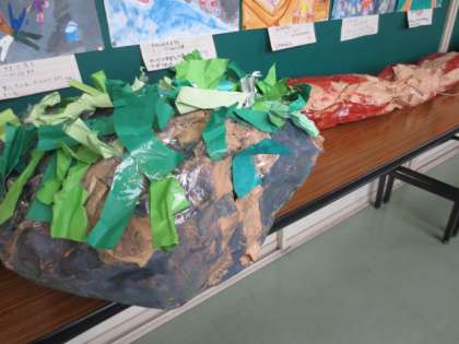 2年生は、図画工作の時間にグループで作った魚や海藻等を、学びの発表会で使います。これは、イセエビです。他にどんな物が登場するかお楽しみに。
