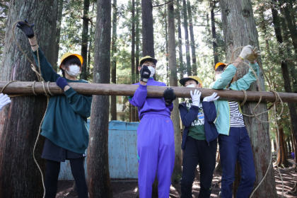 どの班もみんなで協力しながら、シーソーやブランコ、滑り台等をつくっていました。