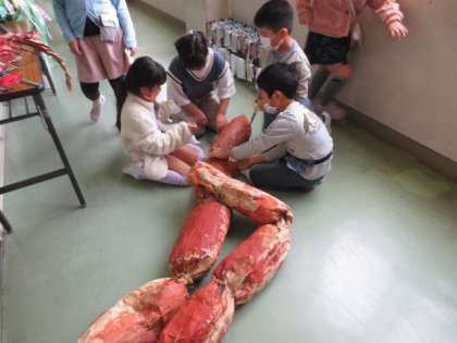 発表会の練習に熱が入ってきました。2年生は、練習中に破れた道具を進んで直していました。4年生は、グループでタイミングを合わせる練習を何回もしていました。