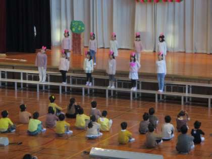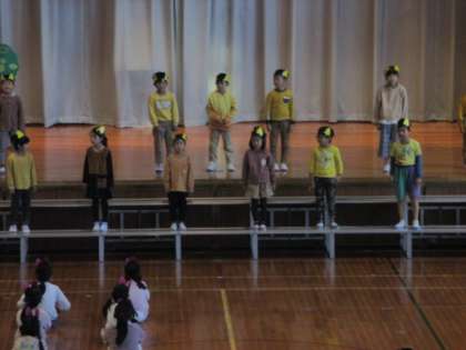 1年生は、国語科「ことば遊び」の学習を発表しました。子供たちは、自分の台詞を元気よく発表してとても満足そうでした。保護者の方は、「全員がグランプリだな」と感じられたのではないでしょうか。