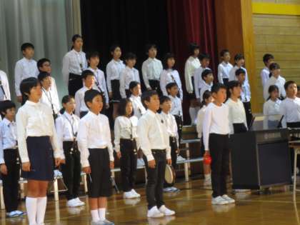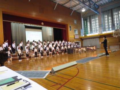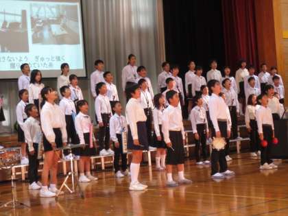 5年生は、合奏と合唱の発表をしました。合奏では、テンポをしっかり合わせて心を一つにして演奏することができました。また、高い音もきれいに響かせ、保護者の方から大きな拍手をいただきました。