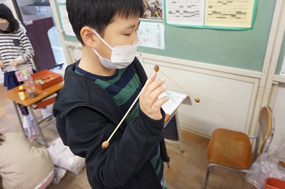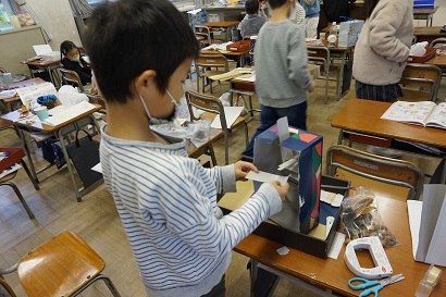生活科では、どんぐりや落ち葉を使ったおもちゃを作っています。楽しいおもちゃができるように一生懸命に考えています。材料等の準備、ありがとうございました。