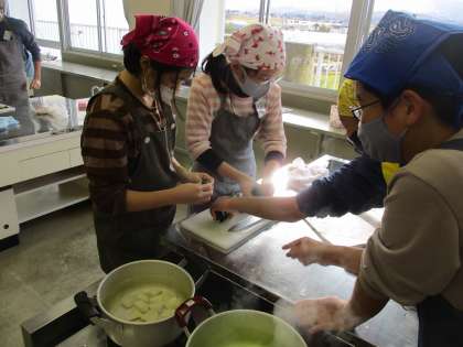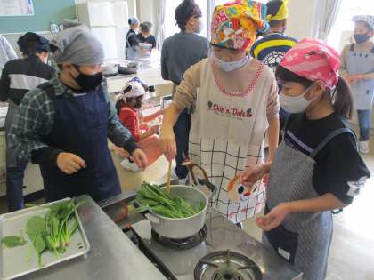 ほうれん草とジャガイでモは茹で方が違うため、茹で方に気を付けながらグループで協力して調理することができました。
