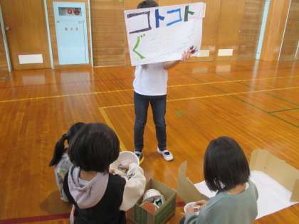 1年生を招待する前に、2年生でおもちゃランドを開きました。それぞれのおもちゃを楽しんだり、改善点を話し合ったりと意欲的に学習に取り組むことができました。