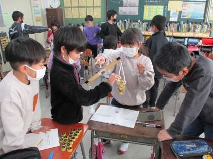 立てた予想と見事ぴったり当てられた子供もいて、大喜びでした。「消しゴムは小さいけれど、意外に重かった」「コンパスは、1円玉が20個分で20グラムだ」などという声が聞かれました。