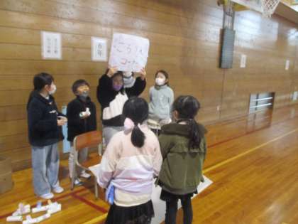 生活科の学習で作ったうごくおもちゃで1年生にも遊んでもらいたいという思いから、おもちゃランドを開きました。大きな声でルール説明をしたり、遊びのポイントを優しく教えてあげたりしていました。「1年生が喜んでくれて嬉しかった」「頑張って準備してよかった」と、とても有意義な時間となりました。