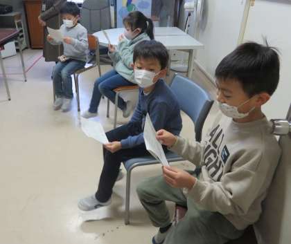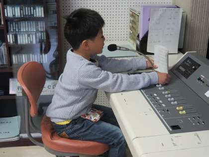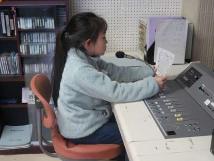 2年生が放送をしてくれています。放送前に、ドキドキしながら作文を読む練習をがんばっていました。