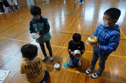 2年生がおもちゃランドに招待してくれました。遊びのルールをしっかりと聞き、いろいろなおもちゃで遊びました。
