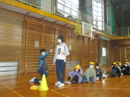 縦割り班で、じゃんけんゲームや新聞運びリレーを行いました。どの班も笑顔でいっぱいになりました。明日の青・黄団の集会も楽しみです。