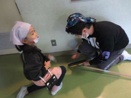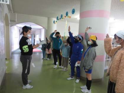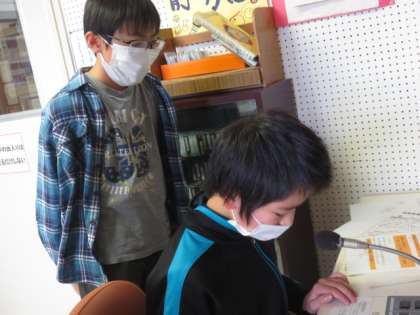 今週は、学期末の清掃重点週間です。今日の重点箇所を環境委員が放送します。青団7班は、清掃用具のほこりをきれいに取りました。反省では、よかったところを発表しました。