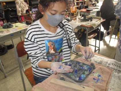 焼き上がりの後、どのようにガラスが溶け、色が混ざり合うのか今からとても楽しみです。