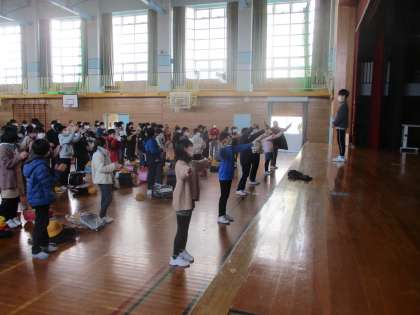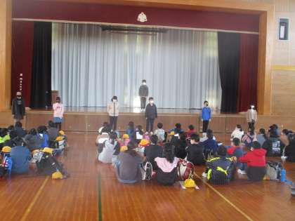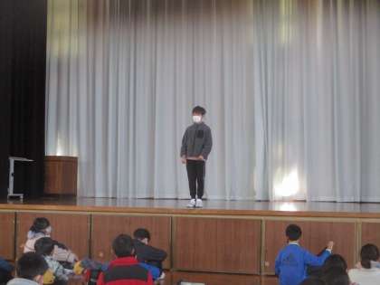 12月26日(日)に行われる全国小学生バドミントントン選手権大会に出場する学年の仲間を応援する壮行会を開きました。
