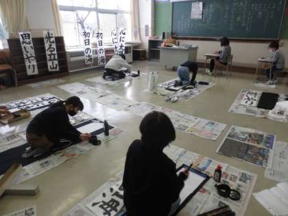 1月17日(月)、2回目の書き初め練習会がありました。作品を書くポイント等を聞いた後、全員、熱心に練習をしました。勢いを感じられる作品を書くことができました。