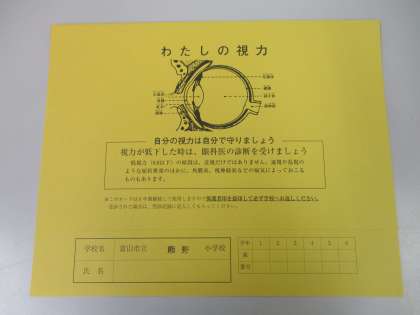 視力の低下が見られる場合や、めがねを使用しても見えにくい場合は、早めの受診をお勧めします。受診の結果は「わたしの視力」カードに記入してもらってください。