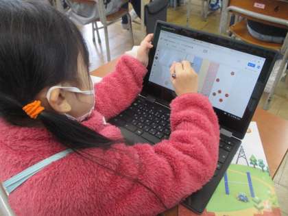 算数科では、1000より大きな数の学習をしています。クロムブックを活用してお金を動かしたり、位取り表に数字を書いたりし、大きな数の表し方や書き方を学びました。