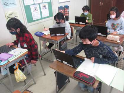 クロムブックを使って自分が興味をもったことについて調べ、パラリンピックに関する知識を深めている子供たちです。写真は2組の様子です。