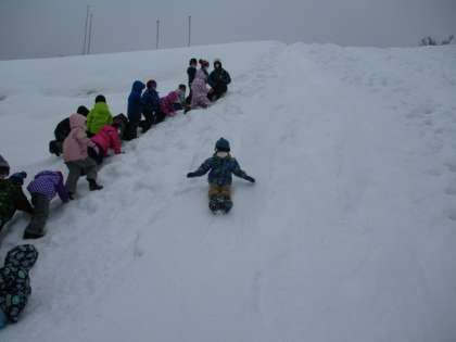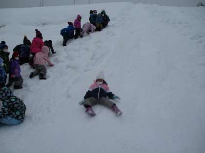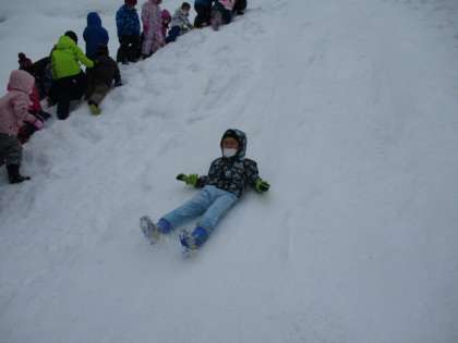 最後は、しりすべりの様子です。最初は怖がっている子もいましたが、少しずつ慣れて、最後には楽しく滑りました。