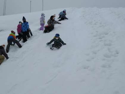 タイヤチューブすべりの後は、しりすべりを行いました。少し急な坂も怖がることなく、おもいっきり活動を楽しみました。