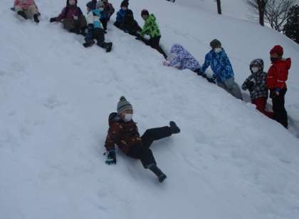 今日は待ちに待った雪っ子遠足でした。天気・雪質共に恵まれ、充実した1日となりました。帰り道はヘトヘトになるくらいまで全力で楽しみました。